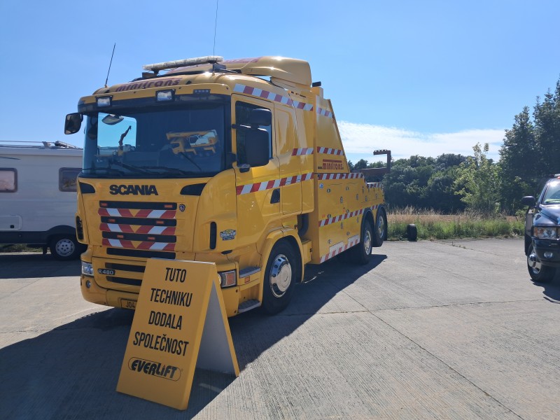 O uplynulém víkendu jsme se opět zúčastnili mezinárodního setkání odtahových služeb ve Vyškově. Plochu vyškovského letiště obsadili účastníci z několika evropských zemí, kteří vzájemně soutěžili v mnoha odtahových disciplínách. Na našem stánku bylo k vidění nové vozidlo Scania vybavené jeřábem F185A.1.22 a kontejnerovou odtahovou plošinou. Dále si pak mohli návštěvníci prohlédnout zrekonstruovanou nástavbu vyprošťovacího automobilu, kterou jsme vyrobili na vozidlo Scania společnosti Minitrans.