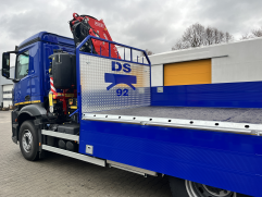Toto vozidlo pro brněnskou firmu je už nějakou dobu v provozu. Za kabinou je osazeno jeřábem Fassi F275 a valníkem, na jehož čele můžete vidět stále oblíbenější prvek našich nástaveb.